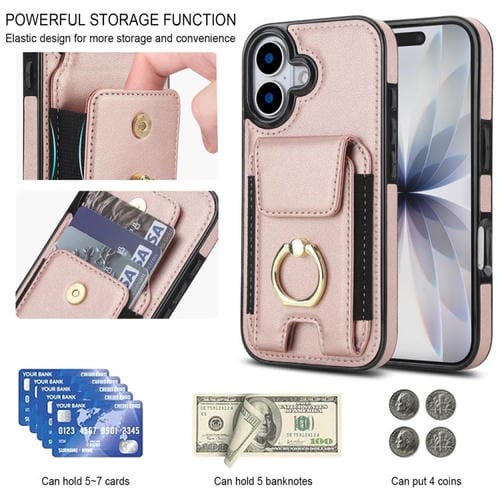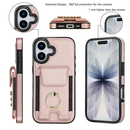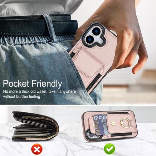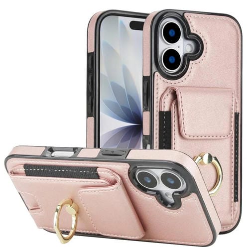 Funda elástica con tarjetero y anilla para iPhone 17 (oro rosa)