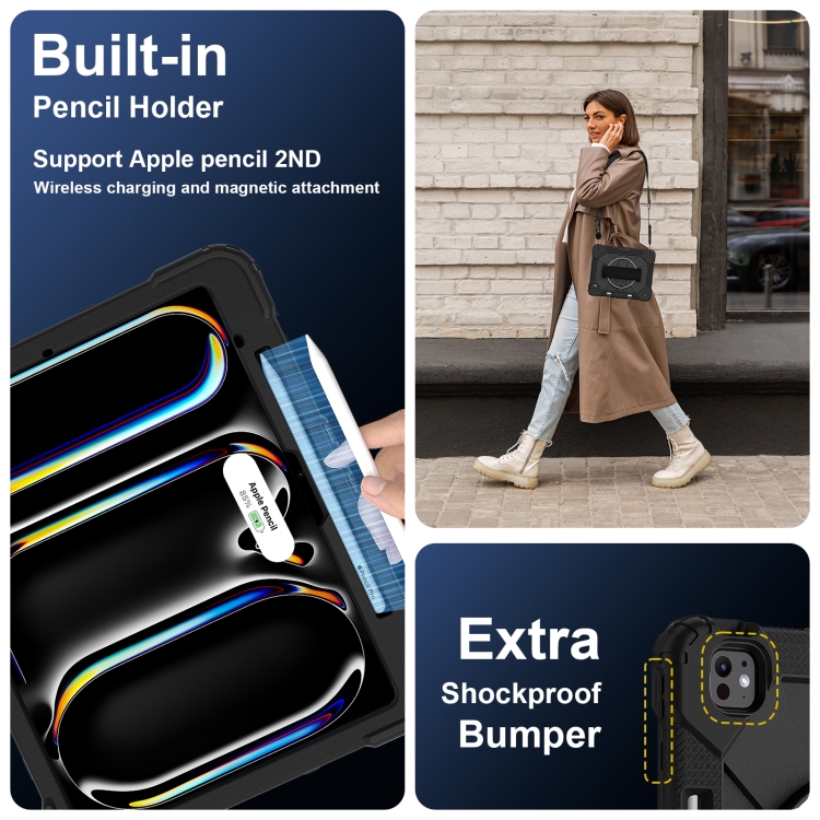 Funda híbrida de silicona con diseño de robot para iPad Pro 13 (2024) (Negra)