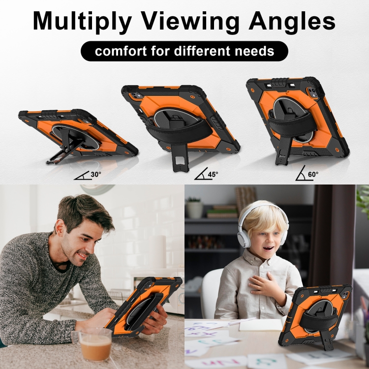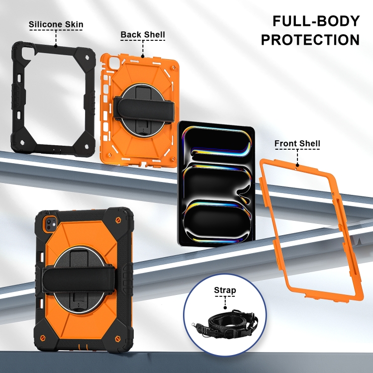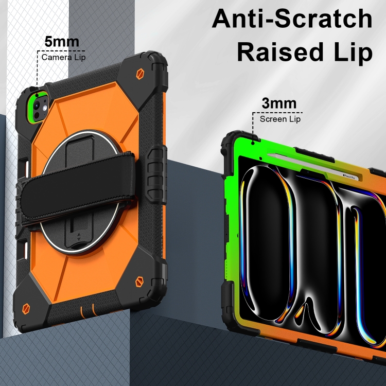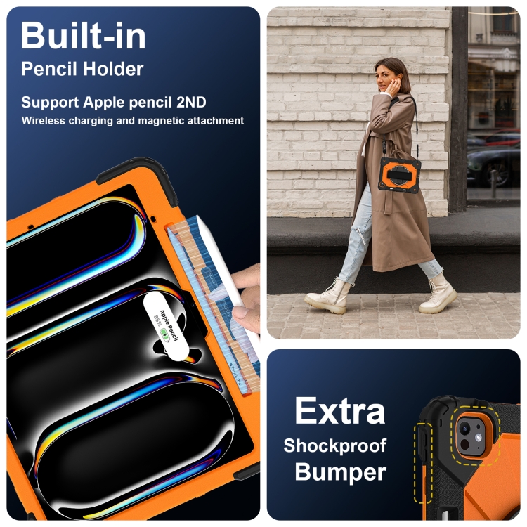 Funda híbrida de silicona con diseño de robot para iPad Pro 13 (2024) (Negro y Naranja)