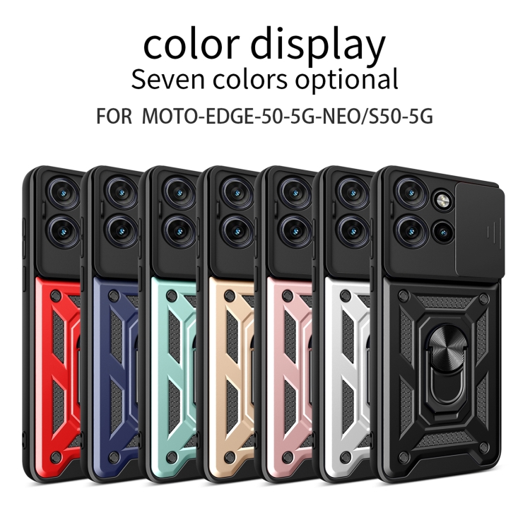 Funda Híbrida TPU y PC con Cubierta Deslizante para Cámara Motorola Edge 50 Neo (Roja)