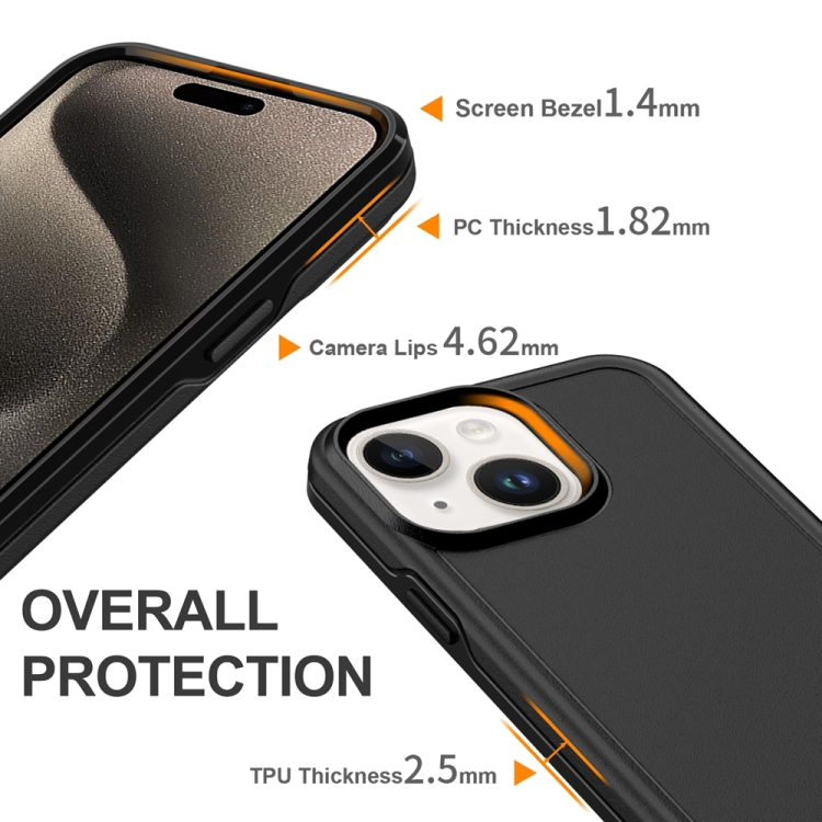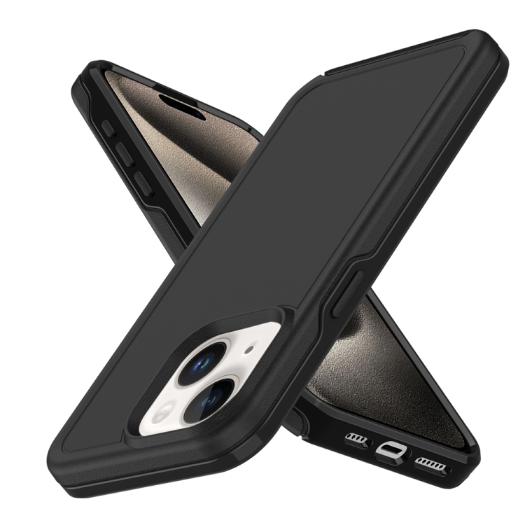 Funda híbrida TPU y PC iPhone 15 Plus protección Magsafe a prueba de golpes (Negra)