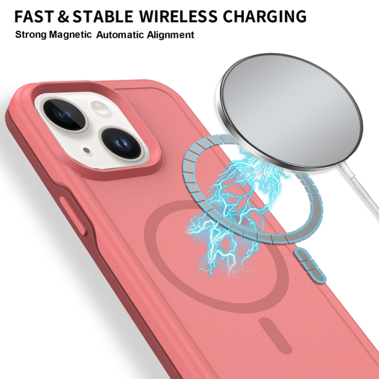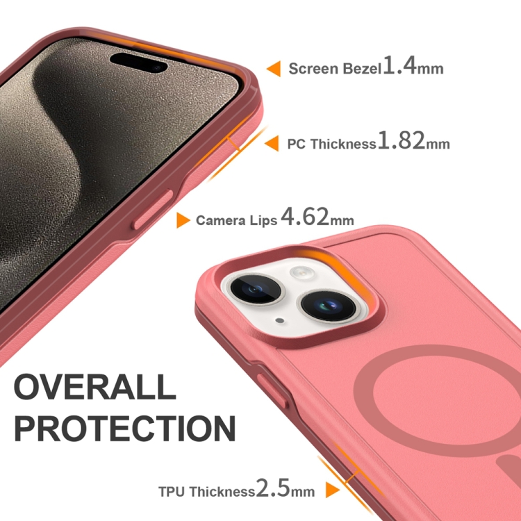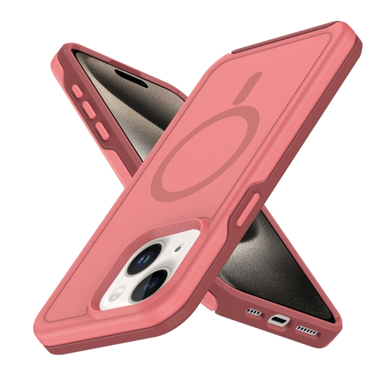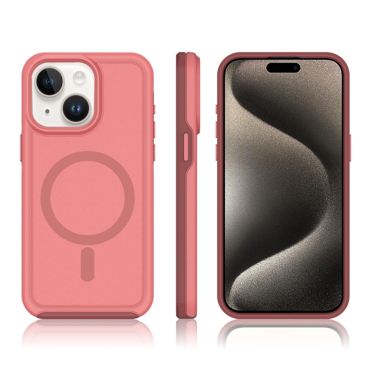 Funda híbrida TPU y PC Apple iPhone 15 Plus protección Magsafe a prueba de golpes (Rosa oscuro y Granate)