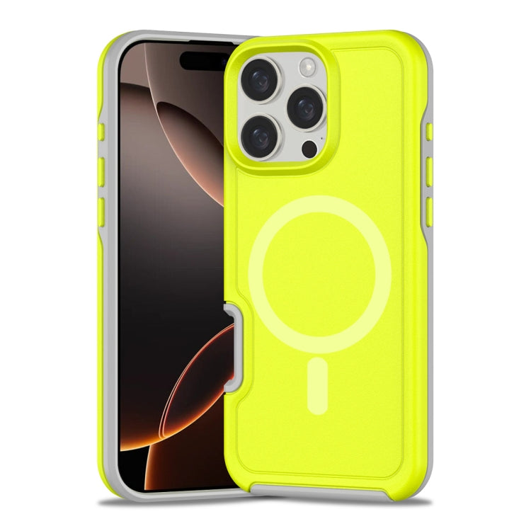 Funda híbrida TPU y PC para iPhone 16 Pro Max con Protección Magsafe a prueba de golpes (Verde Fluorescente y Gris)