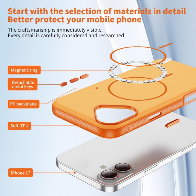 Funda híbrida de TPU y PC para iPhone 17, imitación MagSafe original, bicolor (naranja)
