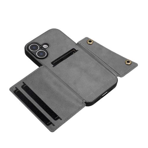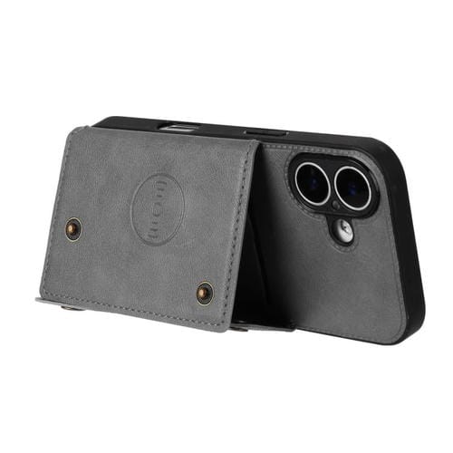 Funda magnética con doble hebilla y ranuras para tarjetas para iPhone 17 (gris)