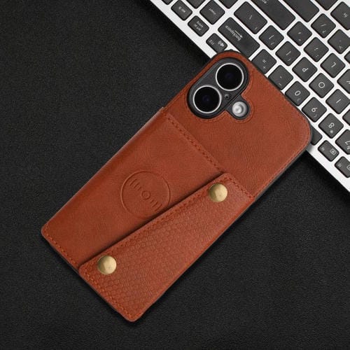 Funda magnética con doble hebilla y ranuras para tarjetas para iPhone 17 (marrón)