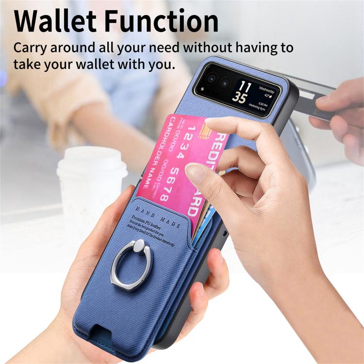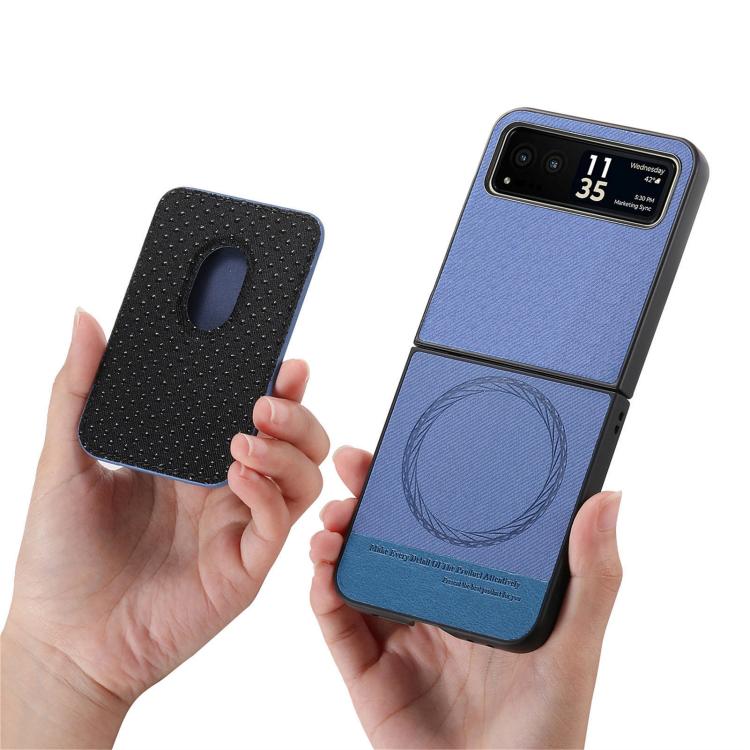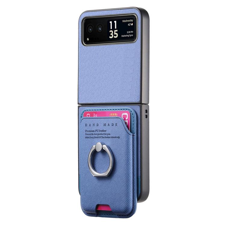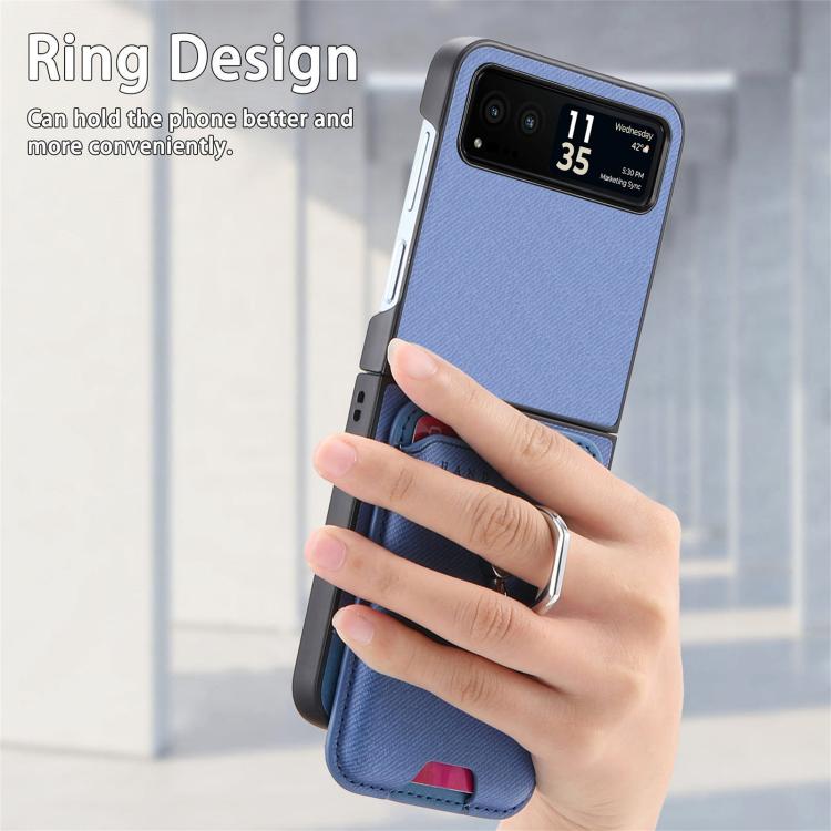 Funda magnética de tela sarga con anillo para Motorola Moto Razr 40 (azul)