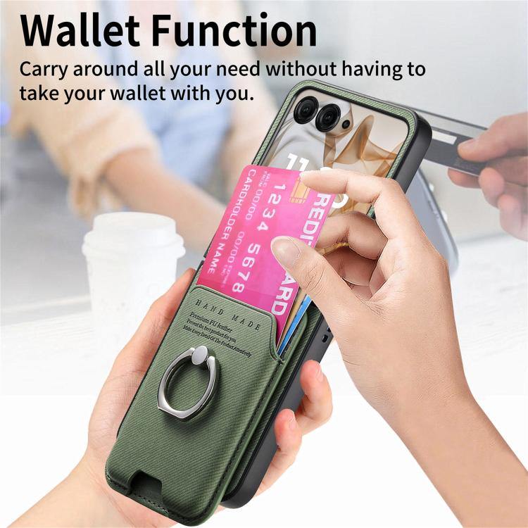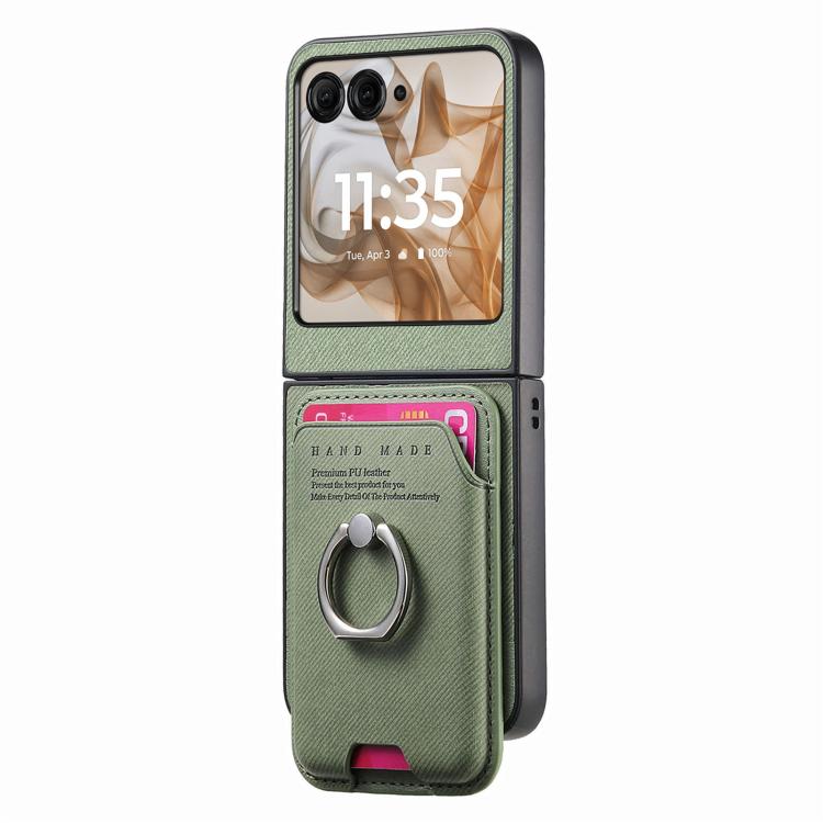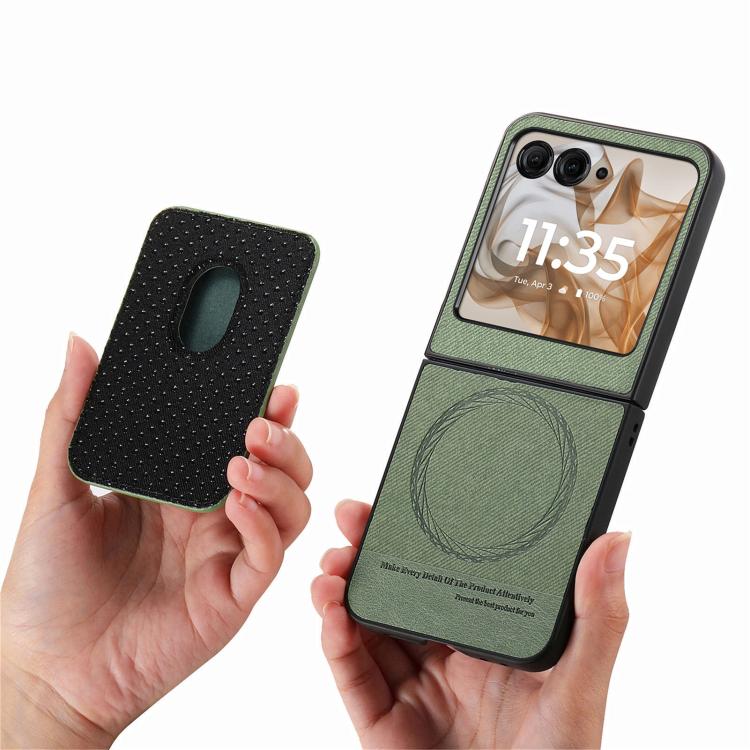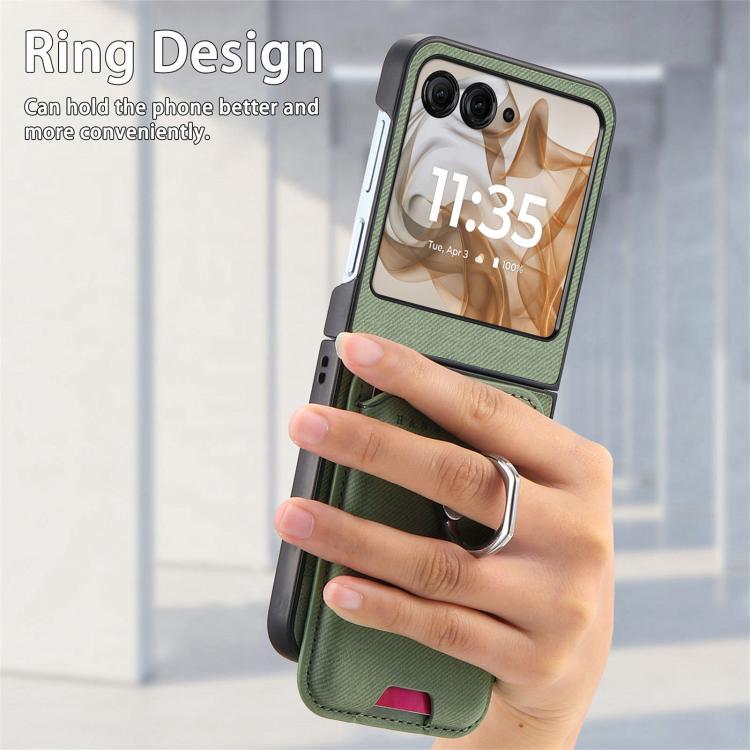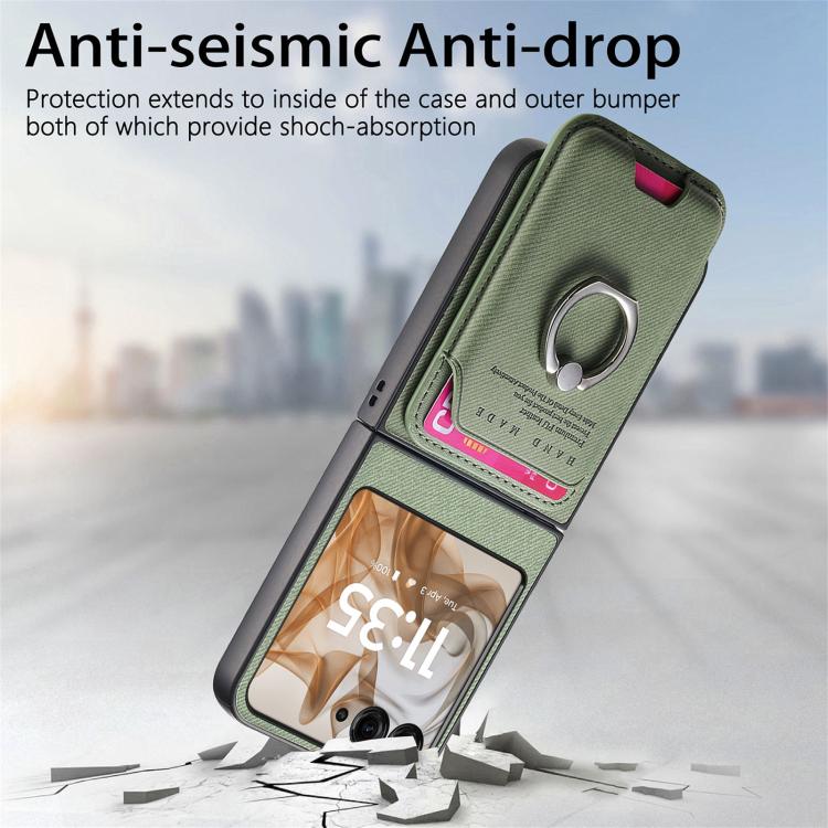 Funda magnética de tela sarga con anillo para Motorola Moto Razr 50/60 (verde)