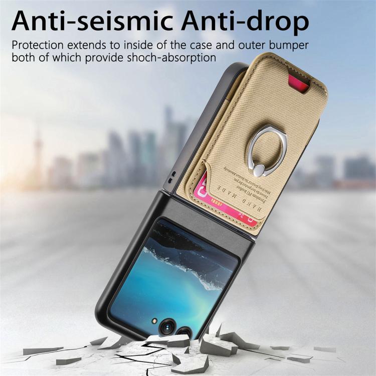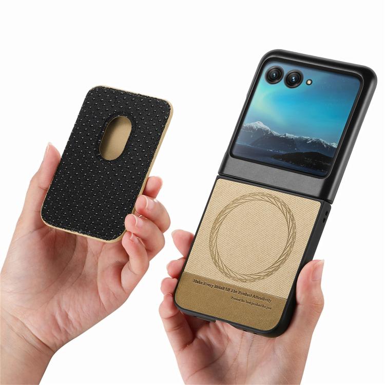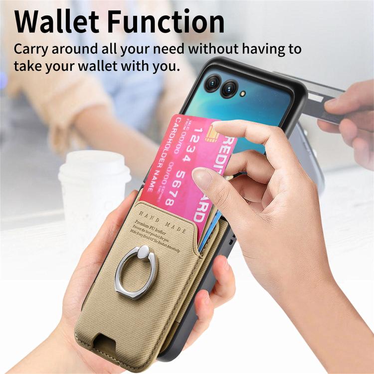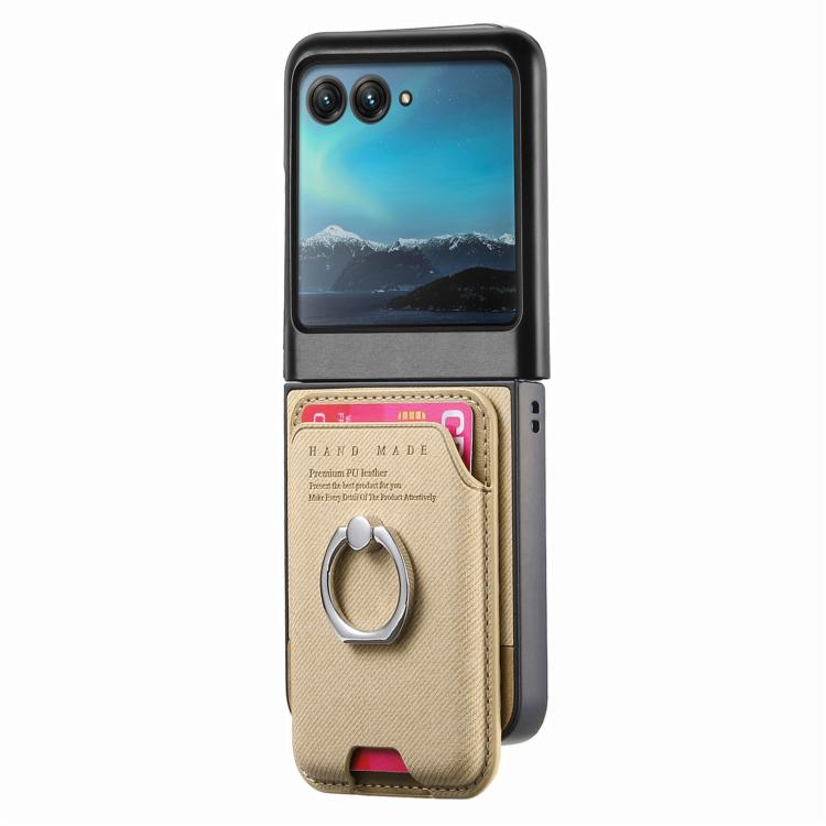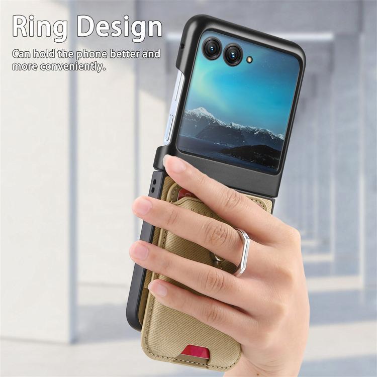 Funda magnética para Motorola Moto Razr 40 Ultra, de tela sarga, con anillo para tarjetas (caqui)