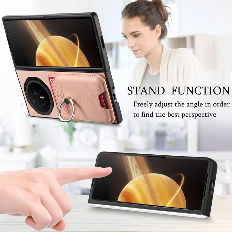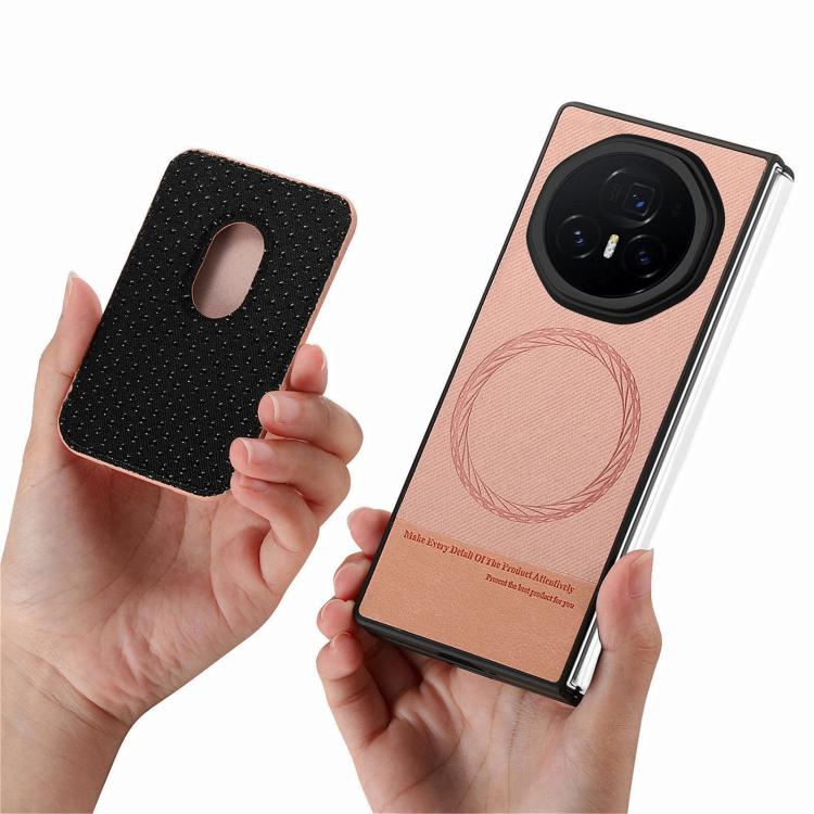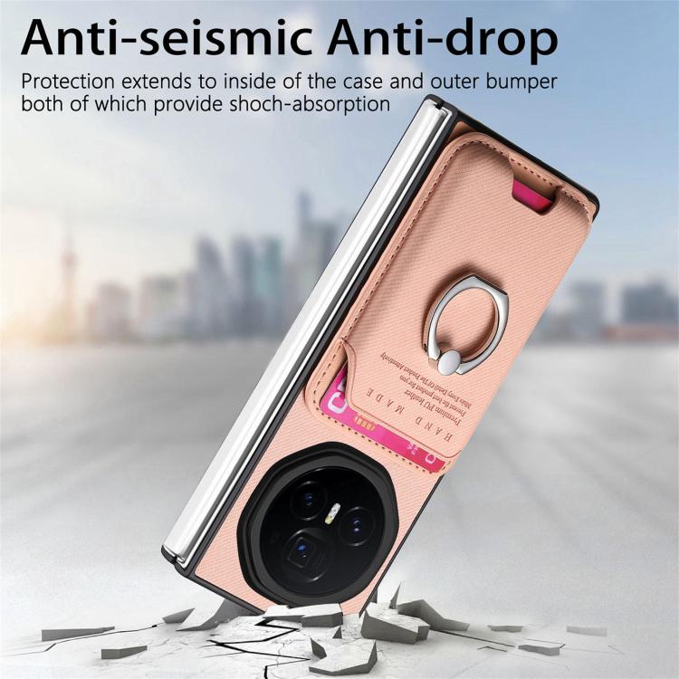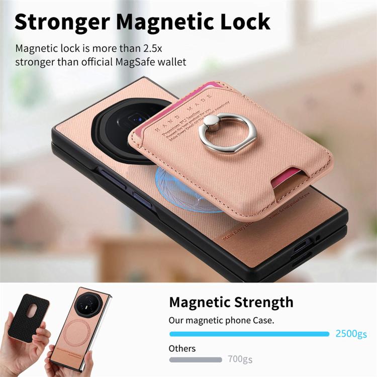 Funda magnética para teléfono con anilla para tarjetas de tela sarga para Honor Magic V3 (rosa)