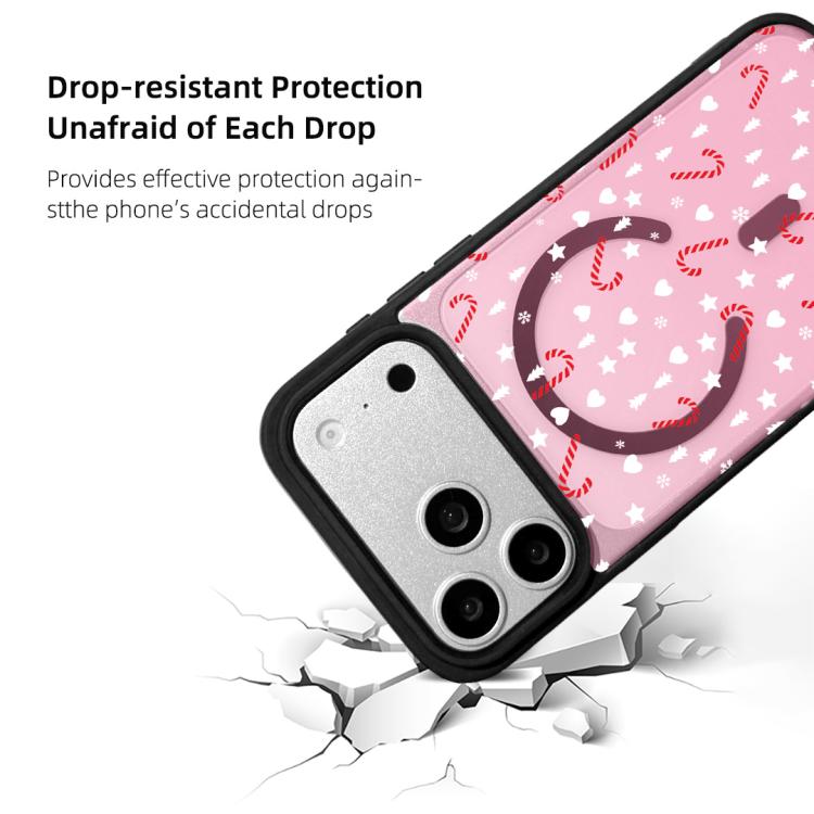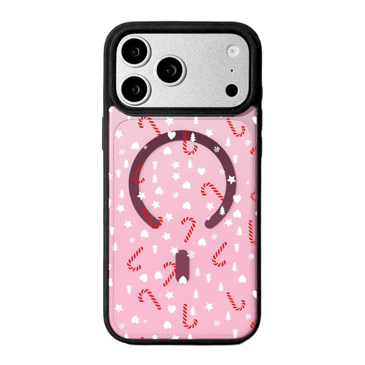 Funda magnética resistente con borde negro pintado de la serie navideña para iPhone 17 Pro Max (rosa dulce semitransparente).