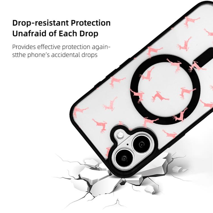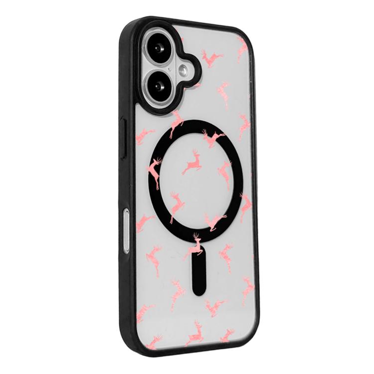 Funda magnética resistente con borde negro pintado para iPhone 17 de la serie navideña (Reno rosa saltando)