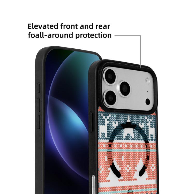 Funda magnética resistente con borde negro pintado para iPhone 17 Pro (Edición Navidad, diseño tejido).