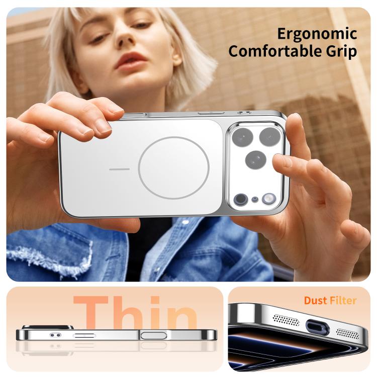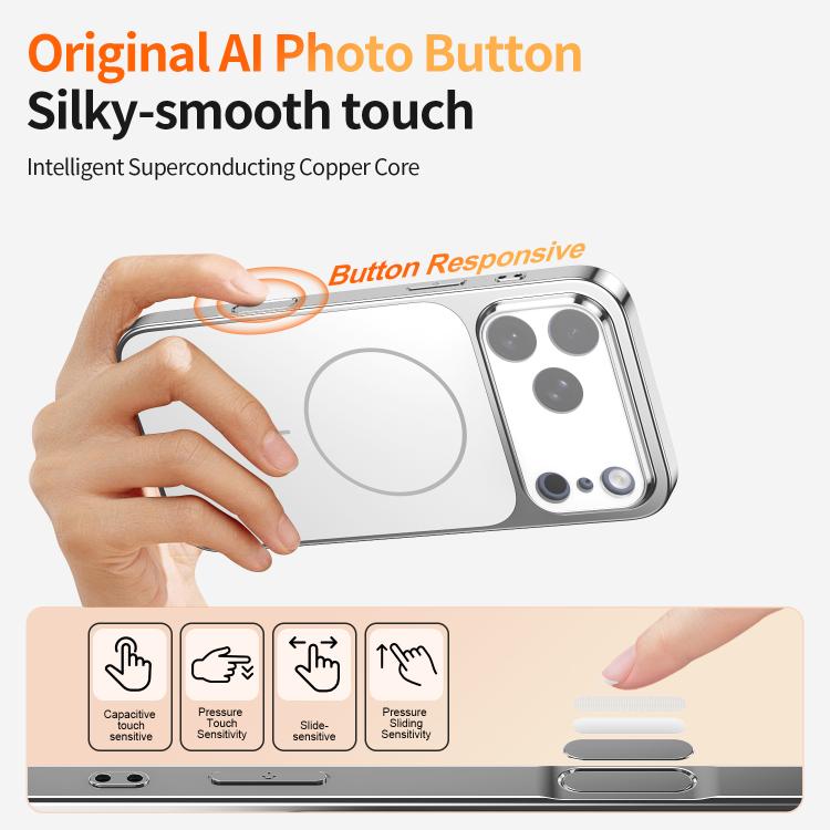 Funda MagSafe con ventana grande y revestimiento de cristal Corning para iPhone 17 (plateada)