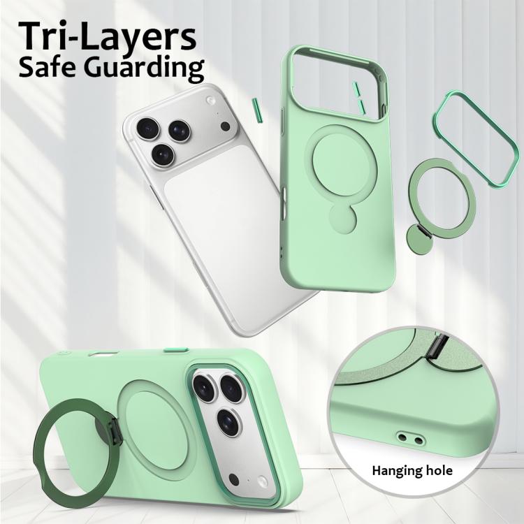Funda MagSafe híbrida de TPU y PC para iPhone 17 Pro Gen1.5 con soporte de anillo pivotante (verde)