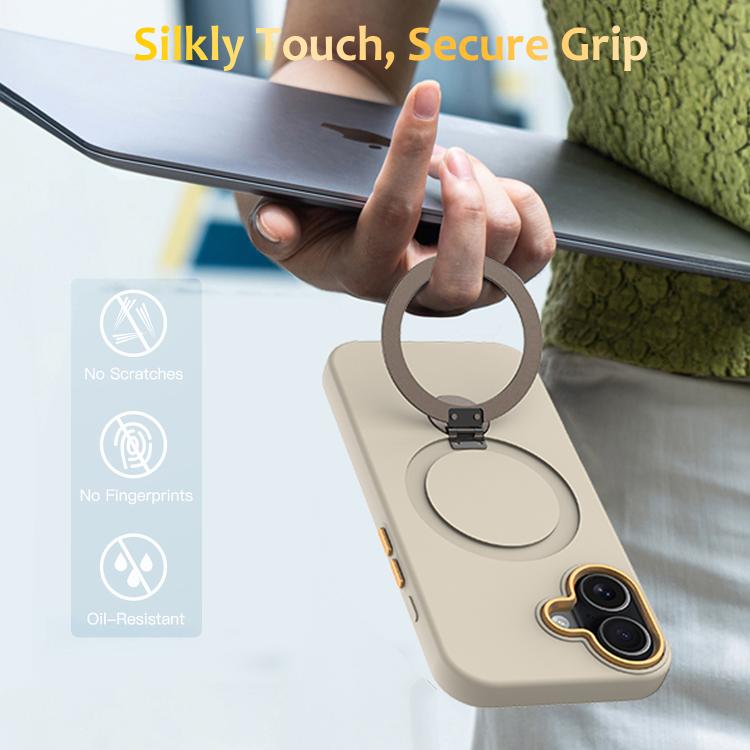 Funda MagSafe híbrida TPU PC con soporte de anillo pivotante para iPhone 17 Gen1.5 (albaricoque)