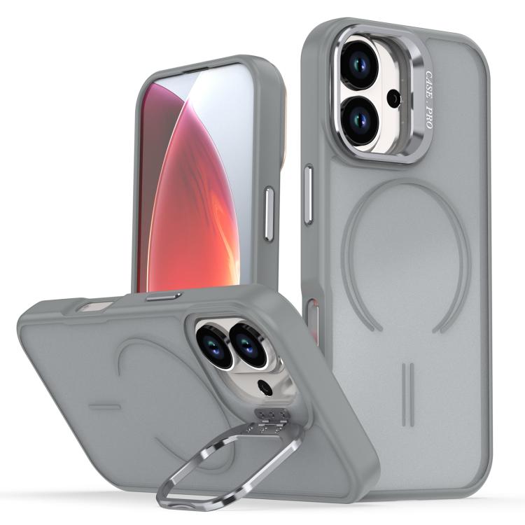 Funda Magsafe para iPhone 17, color brillante, tacto esmerilado, con soporte para cámara (gris)