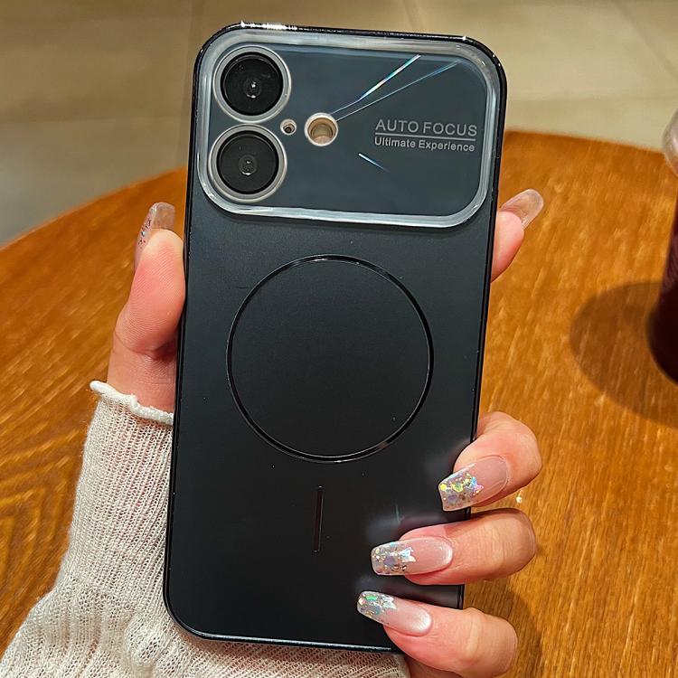 Funda Magsafe para iPhone 17 con marco de cámara con orificio grande y anillo fino (negra)