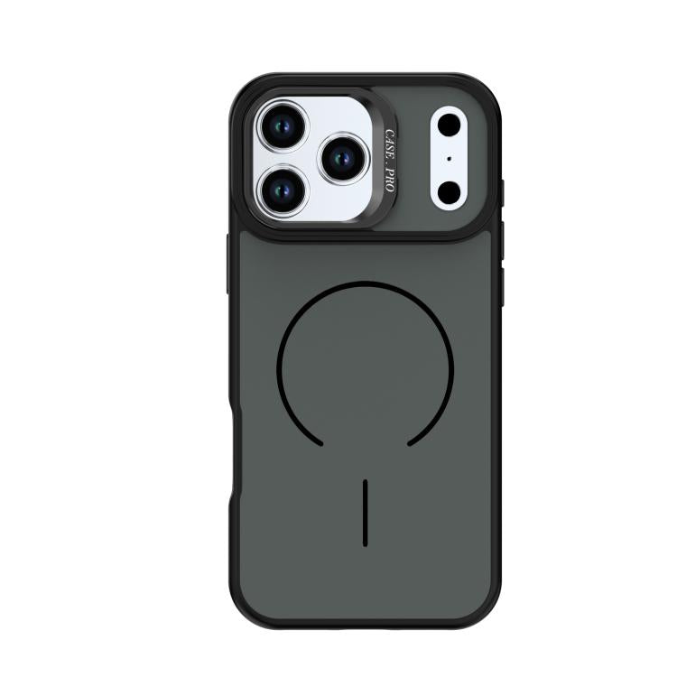 Funda Magsafe para iPhone 17 Pro Max con soporte para cámara y tacto suave en contraste de colores brillantes (negra)