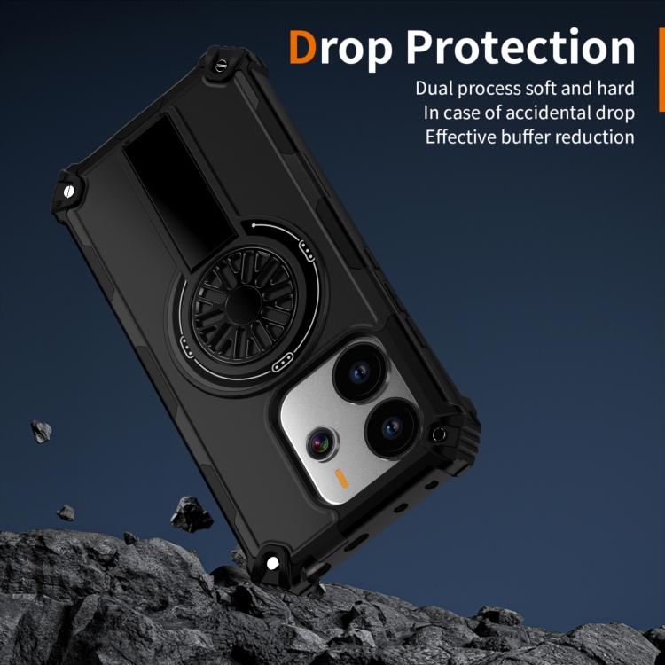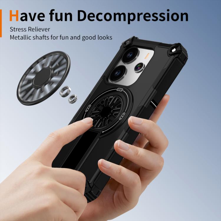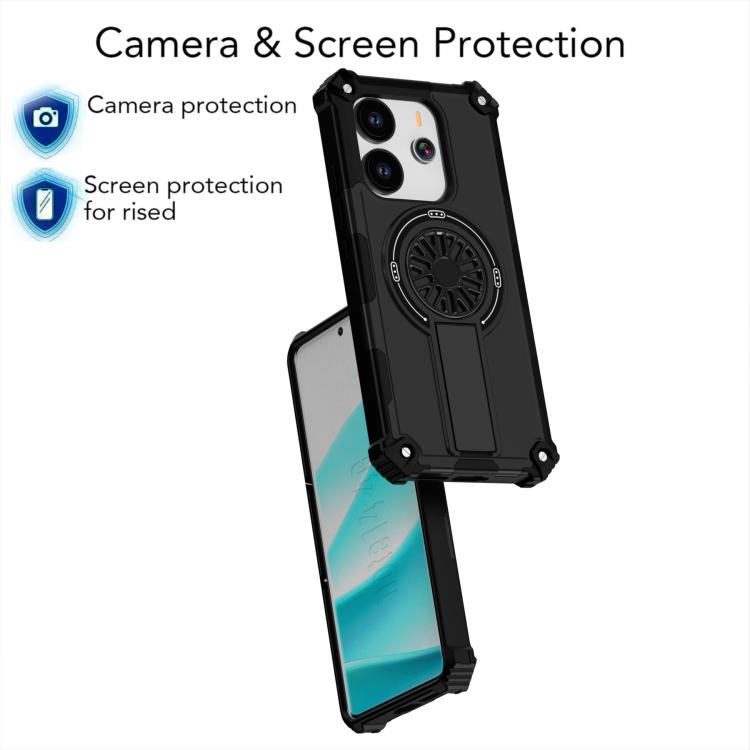 Funda MagSafe para Redmi Note 14 4G de 163,25 mm con soporte metálico y eje a prueba de golpes (negra)