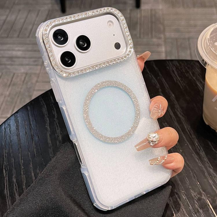 Funda MagSafe semitransparente con purpurina y bordes redondeados para iPhone 17 Pro (azul)