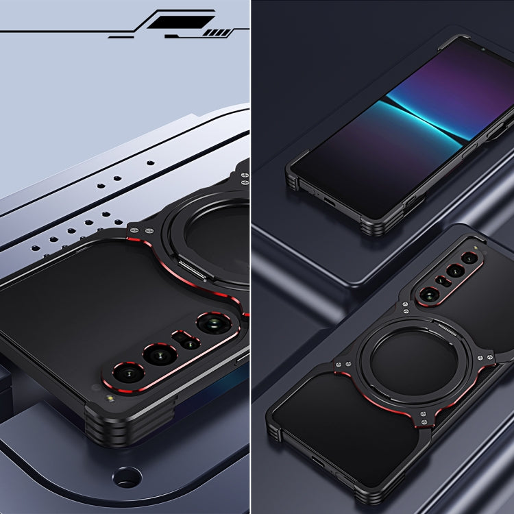Funda metálica con soporte MagSafe sin bordes y brazo mecánico para Sony Xperia 1 VII (negro y plateado)