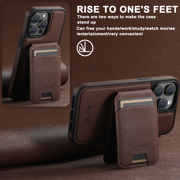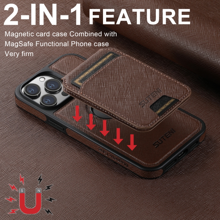 Funda para iPhone 12 Pro Suteni M2 Parte Trasera Tarjeta Vertical Magsafe (Marrón)