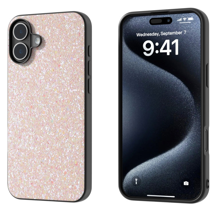 Funda para iPhone 16 Marco Negro Purpurina de Colores (Rosa)