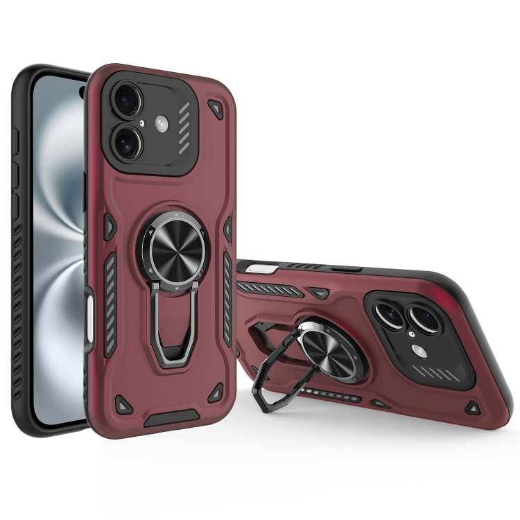 Funda para iPhone 16 Soporte Giratorio Metal Carcasa Magnética TPU PC (Rojo Oscuro)