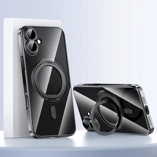 Funda para iPhone 16 Plus Soporte de Anillo PC Chapado 360 Magsafe (Negro Transparente)