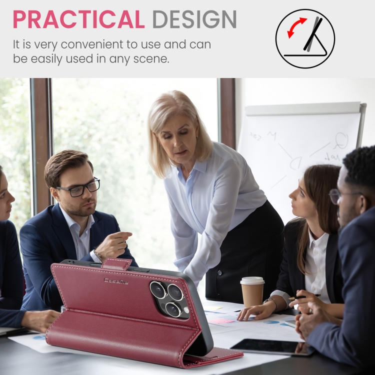 Funda para iPhone 16 Pro Caseme 023 Hebilla de Mariposa Textura de Lichi Antirrobo Rfid (Rojo)