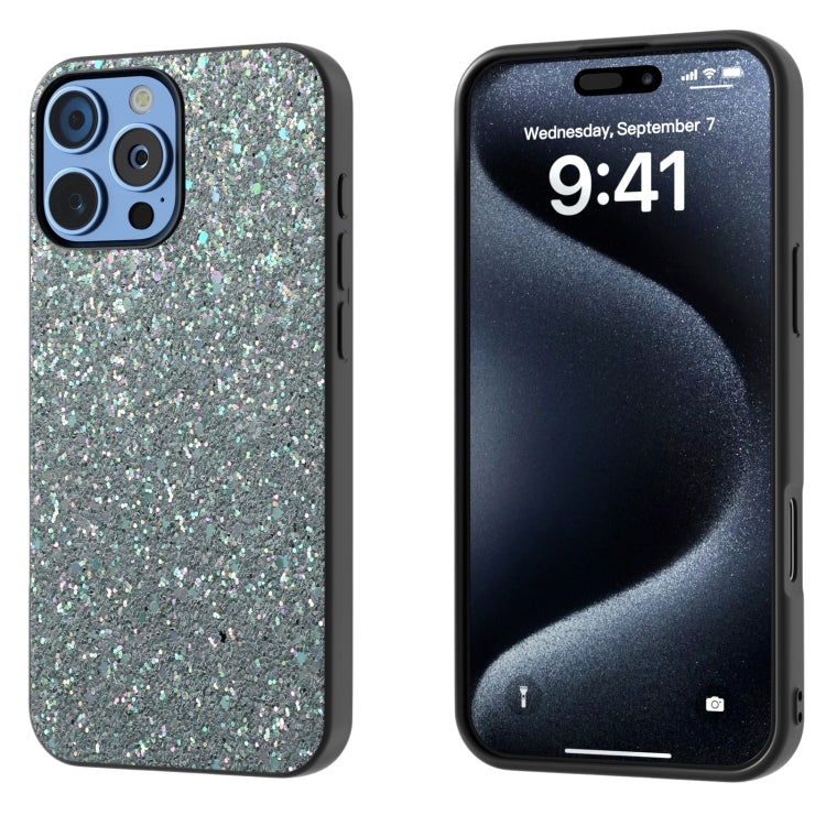 Funda para iPhone 16 Pro Max con Marco Negro y Purpurina Colorida (Negro y Verde)