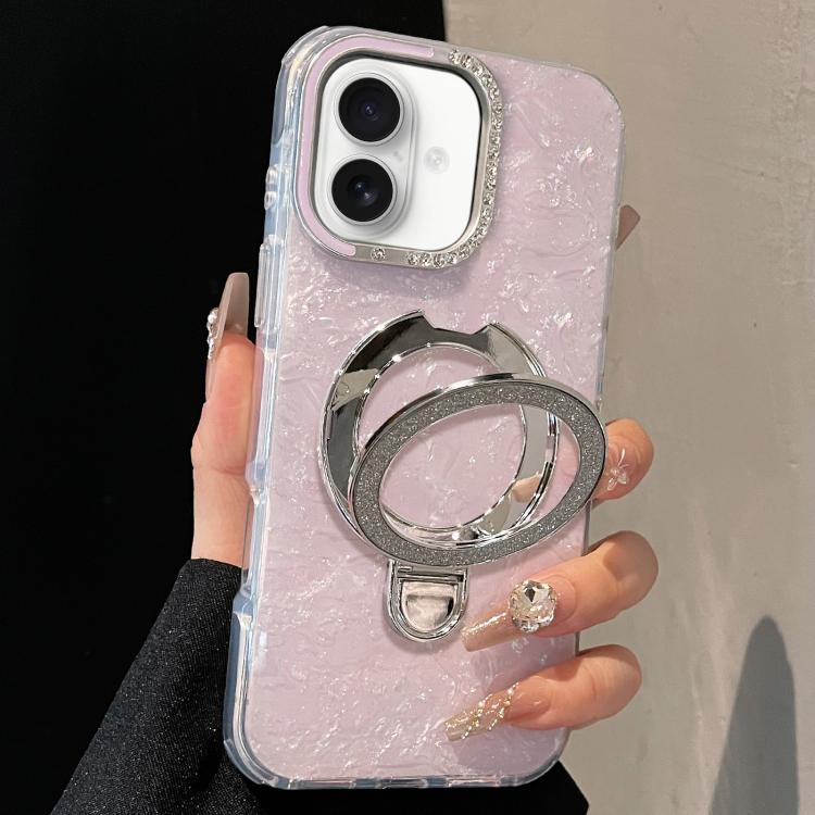 Funda para iPhone 17 con carcasa dorada y colorida, diseño estampado, TPU+IMD, con soporte magnético brillante (morado).