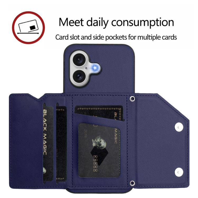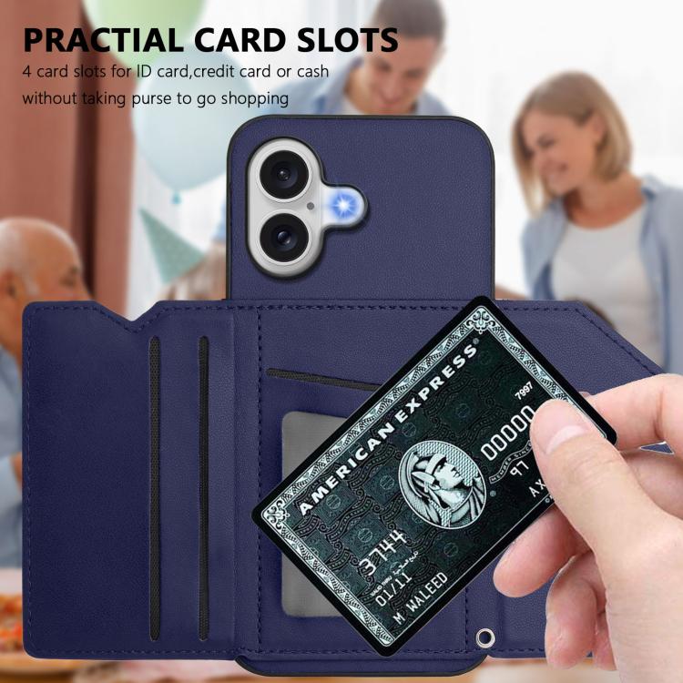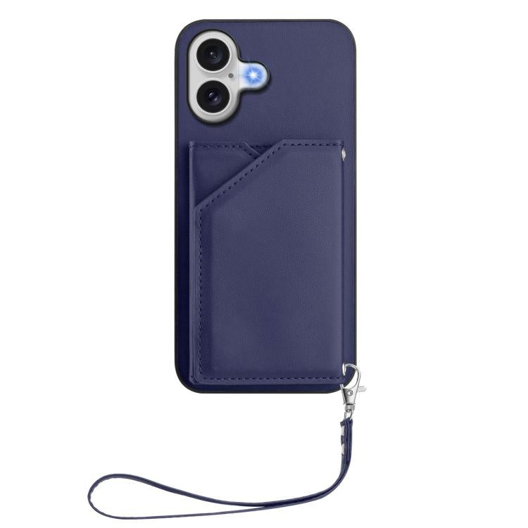 Funda para iPhone 17 con cuatro ranuras para tarjetas y correa para la muñeca (azul)