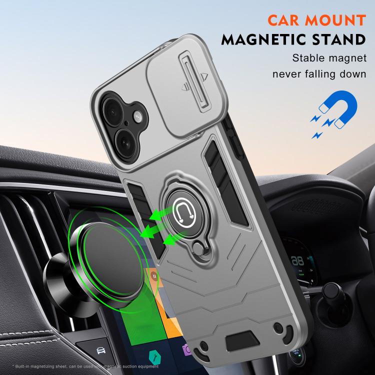 Funda para iPhone 17 con soporte de anillo Camshield (Gris)