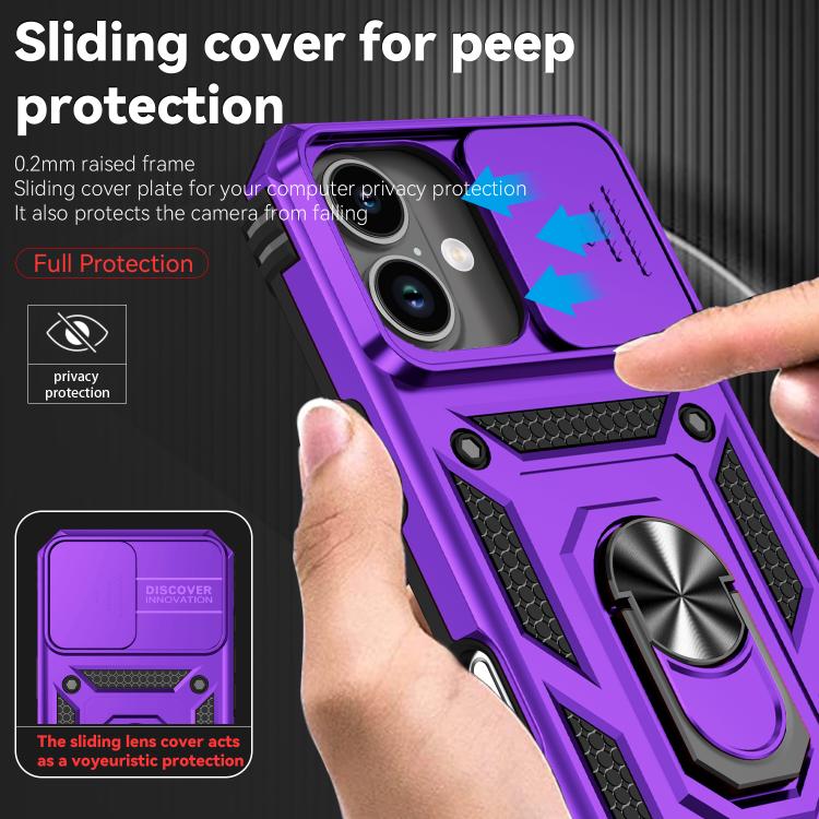 Funda para iPhone 17 con soporte deslizante Camshield (morado)