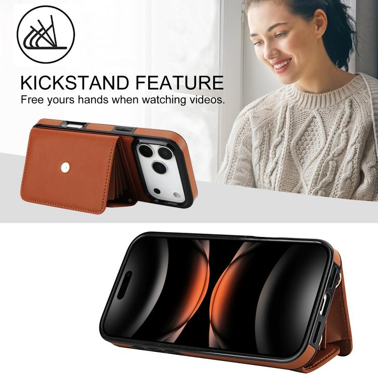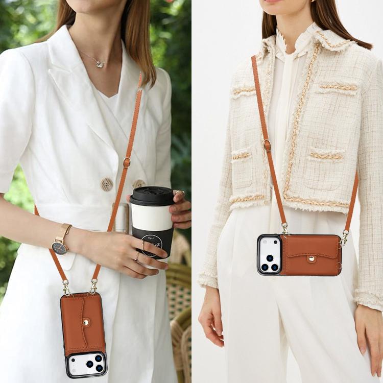 Funda para iPhone 17 Pro con ranura para tarjeta RFID y cordón largo (marrón)