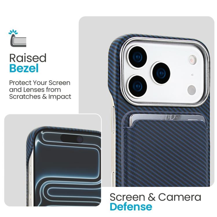 Funda para iPhone 17 Pro con tarjetero magnético MagSafe de fibra de carbono (azul)
