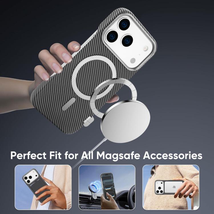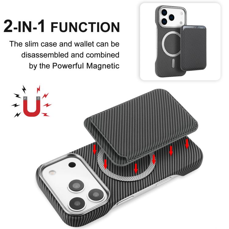 Funda para iPhone 17 Pro con tarjetero magnético MagSafe de fibra de carbono (Gris)