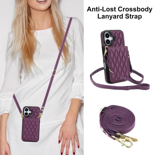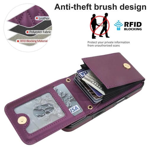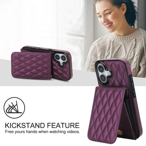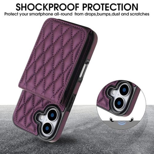 Funda para iPhone 17 YM015 con diseño de rombos y RFID (morado oscuro)