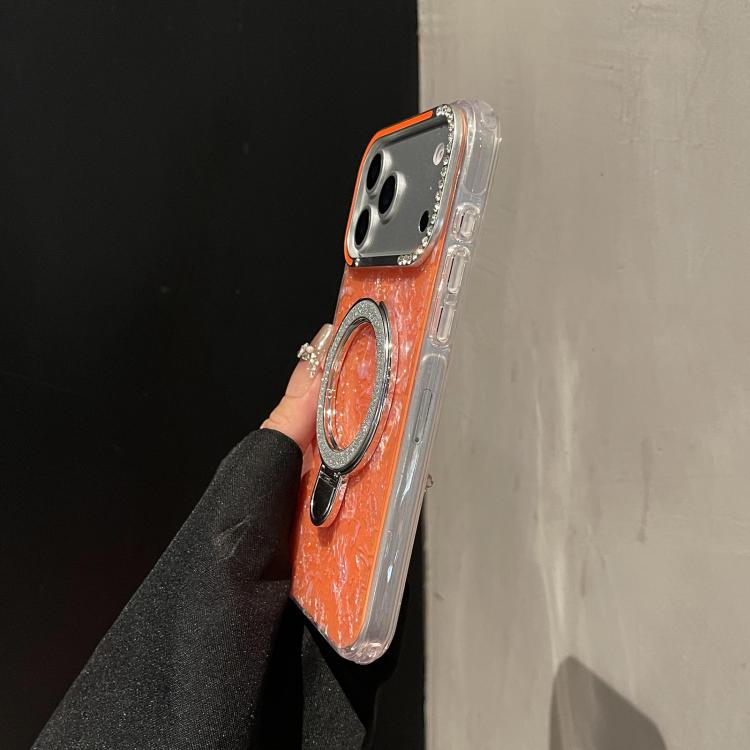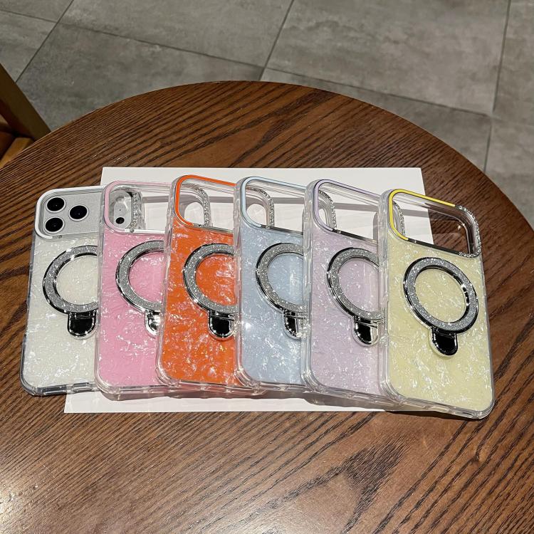 Funda para iPhone Air con carcasa dorada y colorida, diseño estampado en TPU+IMD, con soporte magnético brillante (morado).