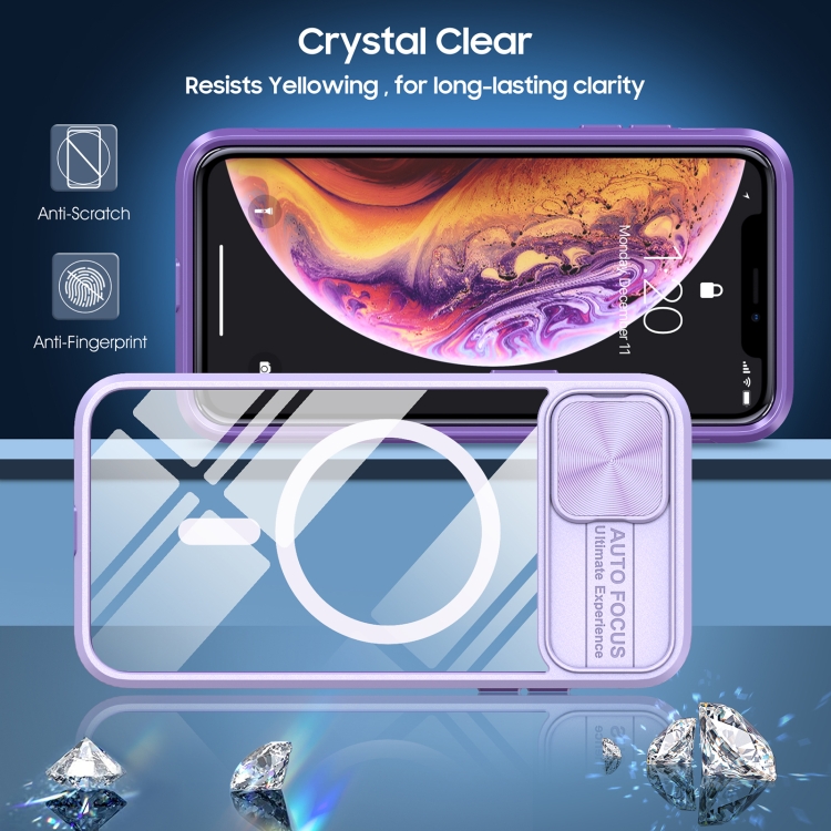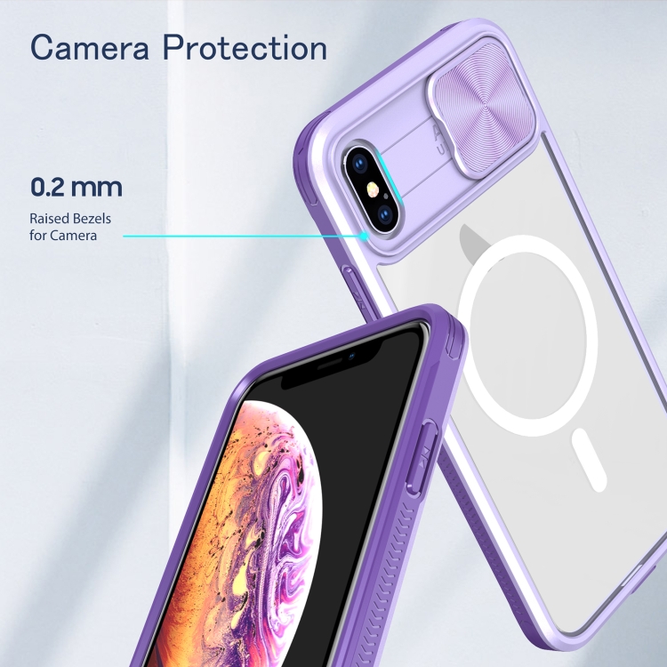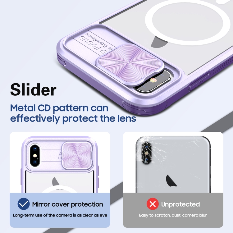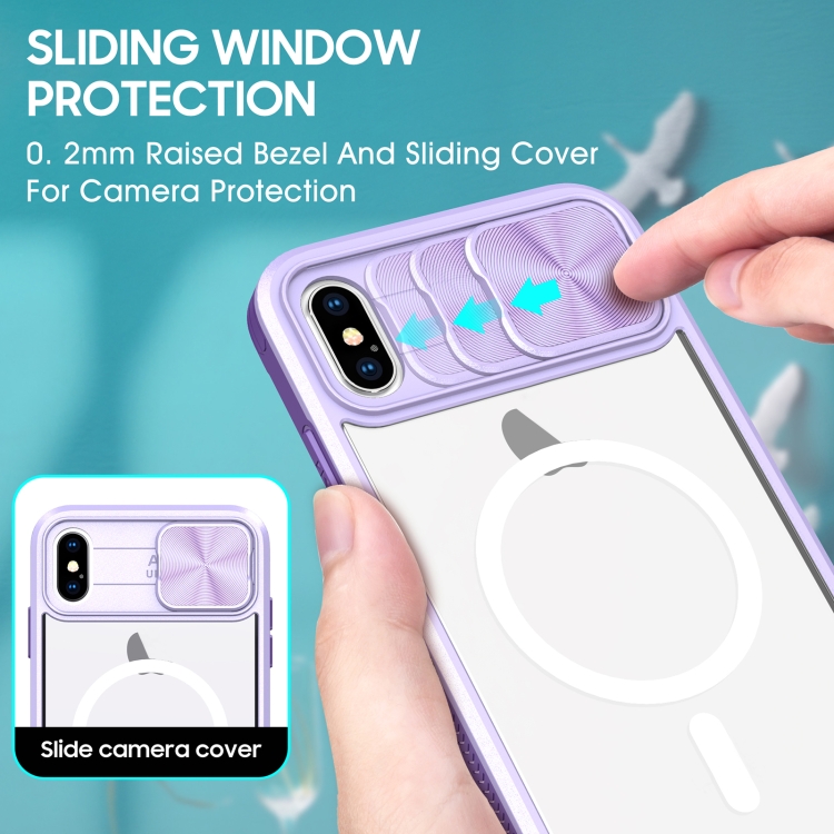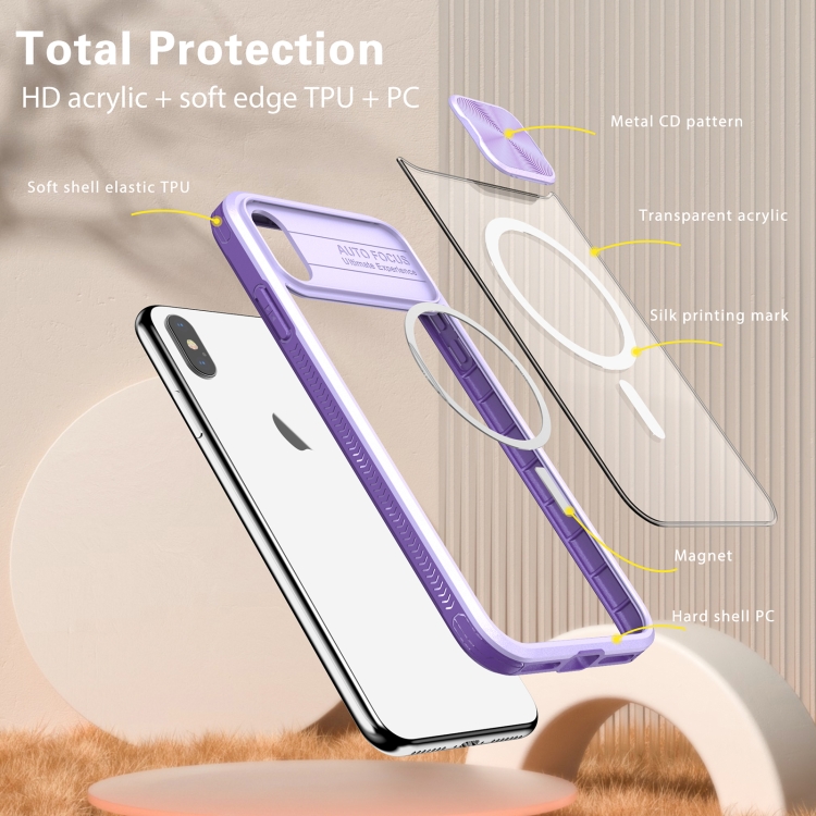 Funda para iPhone Xs Max Cobertura Total Cubierta Deslizante Lente Magsafe Acrílico (Morado)
