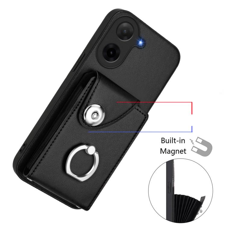 Funda para Redmi A5 4G (171,7 mm) / Poco C71 con tarjetero y anillo (negro)