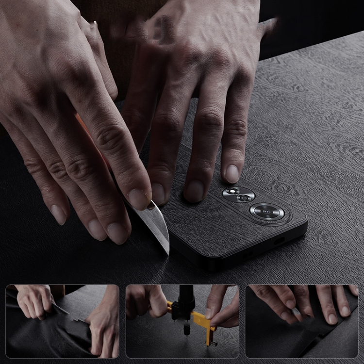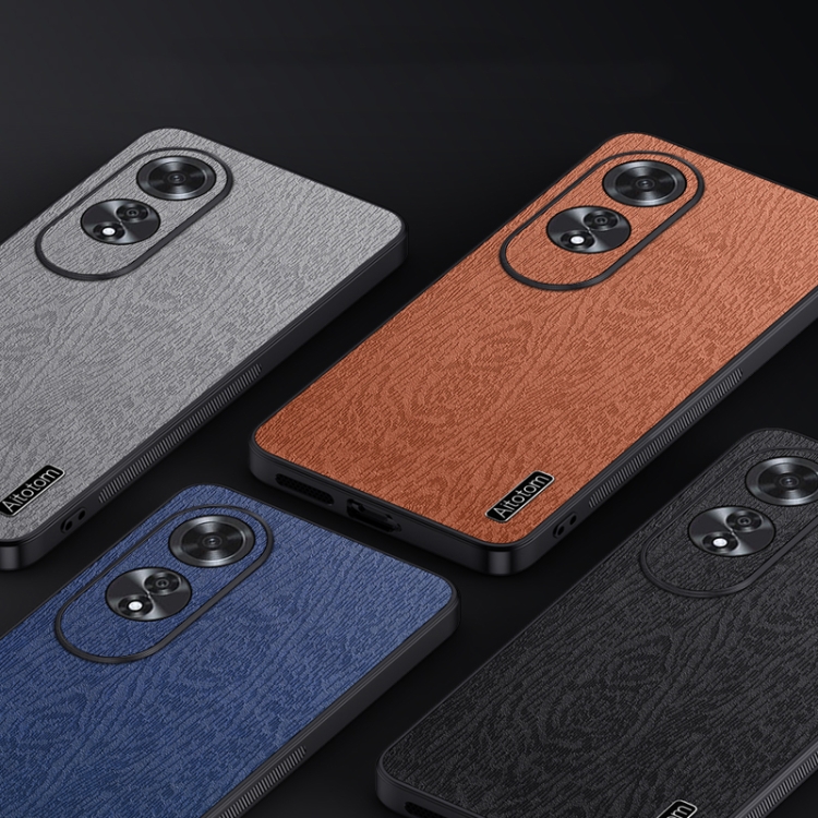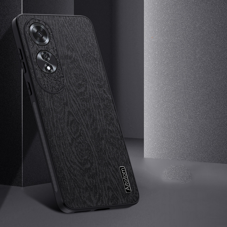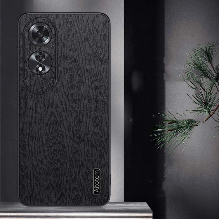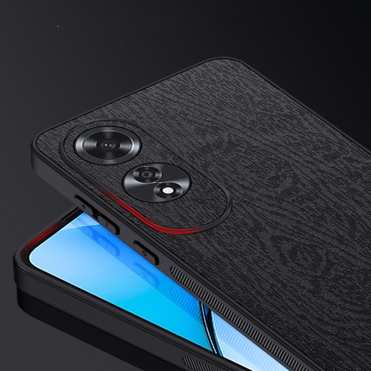 Funda para Teléfono a Prueba de Golpes de Cuero con Corteza de Árbol para Oppo A60 4G Global (Negro)