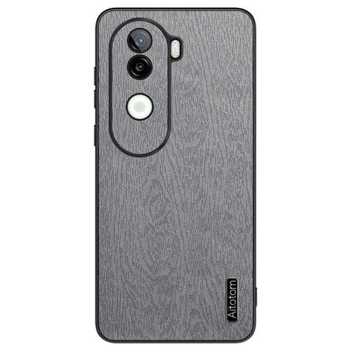 Funda de Cuero con Textura de Corteza de Árbol para Vivo V40E, a Prueba de Golpes (Gris)