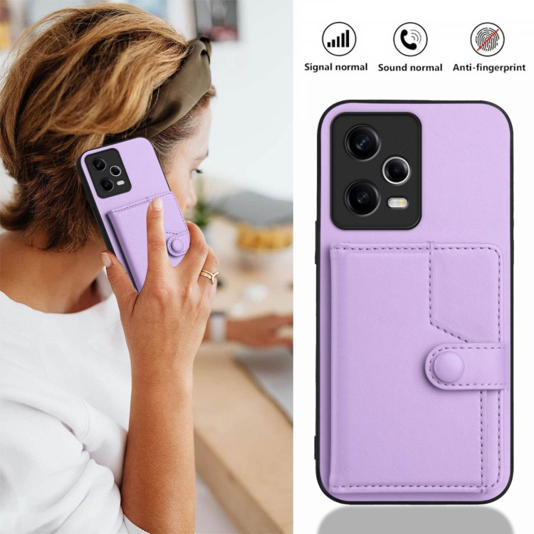 Funda para Teléfono Antirrobo con Botón y Tarjeta Rfid para Xiaomi Poco X5 (Morado)