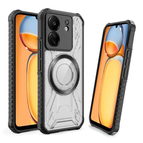 Funda para Teléfono con Airbag Antideslizante de TPU + PC con Textura de Cd Magsafe para Redmi 13C (Negra)