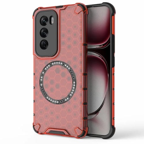 Funda para Teléfono con Anillo Magnético a Prueba de Golpes con Diseño de Panal de Abeja para Oppo Reno12 Global (Rojo)