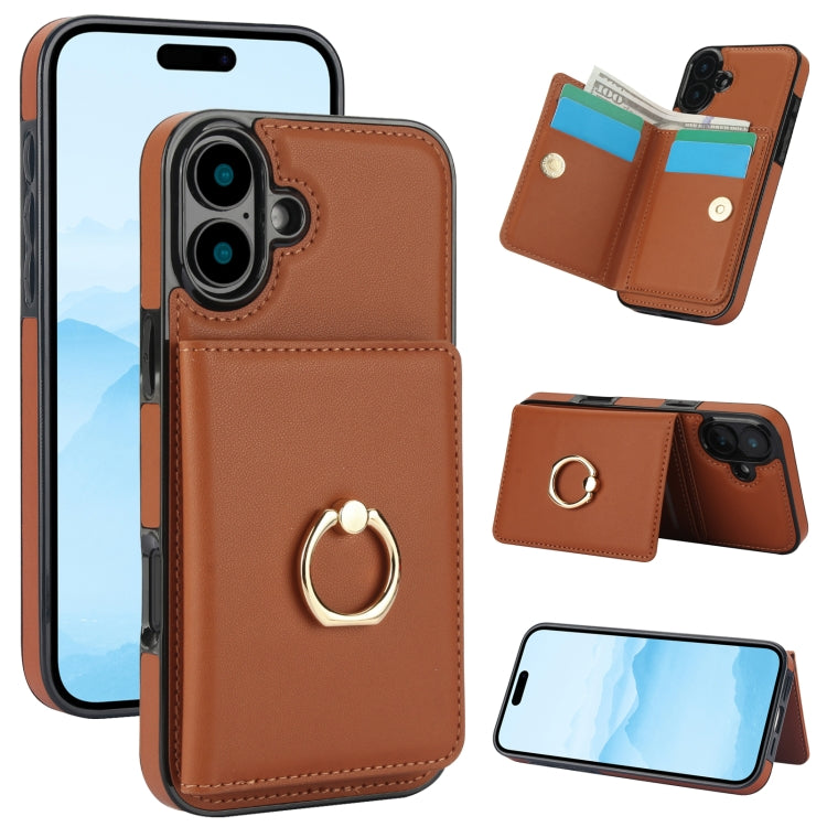 Funda para Teléfono con Anillo para Tarjeta Antirrobo Rfid para iPhone 16 (Marrón)