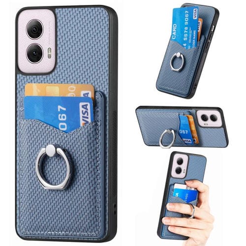 Funda para Teléfono Motorola Moto G Power 5G 2024 con Anillo, Billetera y Tarjetero de Fibra de Carbono (Azul)